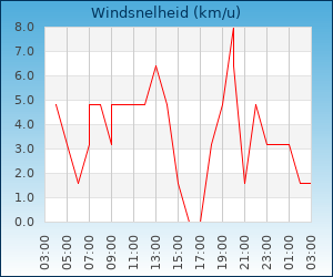 | Maximale windsnelheid | 16.1 km/u om 02:00 u |