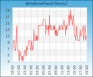 Maximale windsnelheid | 43.6 km/u om 04:00 u |