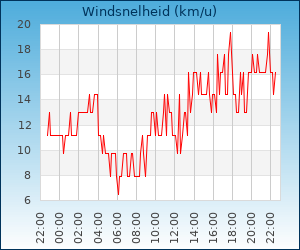 | Maximale windsnelheid | 40.3 km/u om 18:45 u |