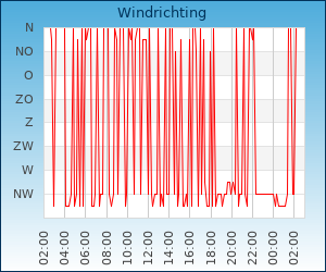 | Windsnelheid en -richting | 6.5 km/u uit NW |