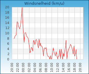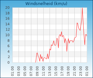 | Maximale windsnelheid | 28.8 km/u om 01:01 u |