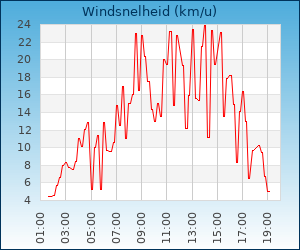 | Maximale windsnelheid | 23.9 km/u om 13:00 u |
