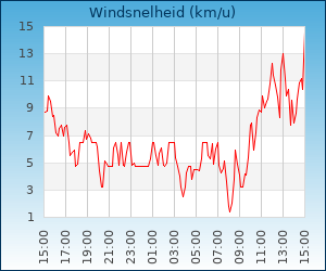 | Maximum temp. | 15.7 °C om 13:17 u |