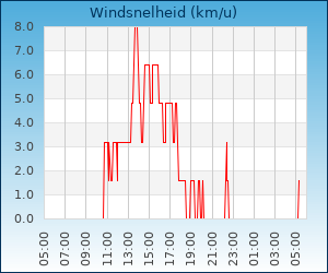 | Windsnelheid en -richting | 0.0 km/u uit WNW |