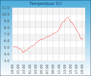 | Maximum temp. | 9.6 °C om 13:54 u |