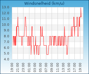 | Maximale windsnelheid | 19.3 km/u om 16:18 u |