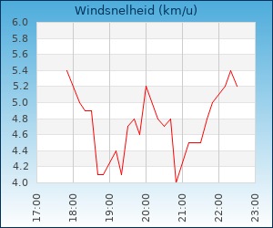 | Windsnelheid en -richting | 4.7 km/u uit ZW |