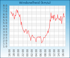 | Windsnelheid en -richting | 3.9 km/u uit ZZO |