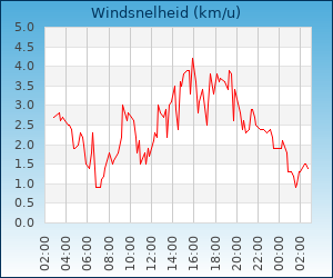 | Windsnelheid en -richting | 1.3 km/u uit O |