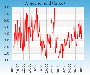 | Maximale windsnelheid | 8.6 km/u om 02:02 u |