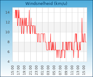 | Maximale windsnelheid | 27.4 km/u om 01:51 u |