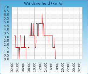 | Maximale windsnelheid | 11.3 km/u om 08:43 u |