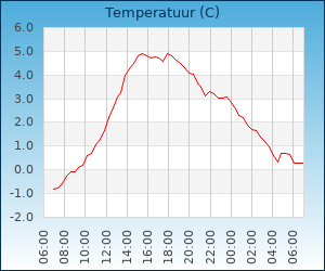 | Minimum temp. | 0.3 °C om 04:21 u |