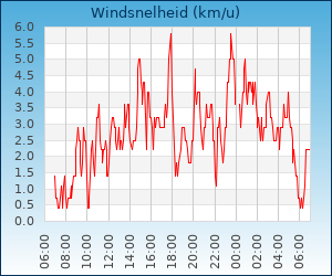 | Maximale windsnelheid | 11.2 km/u om 00:48 u |