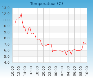 | Maximum temp. | 6.0 °C om 00:00 u |