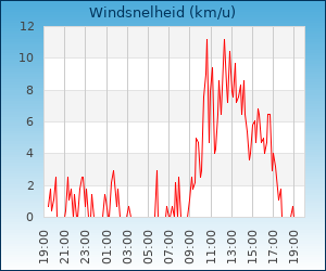 | Maximale windsnelheid | 25.6 km/u om 12:48 u |