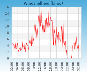 | Maximale windsnelheid | 10.1 km/u om 00:38 u |