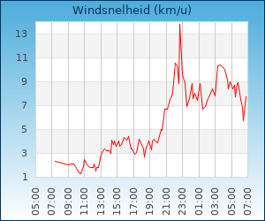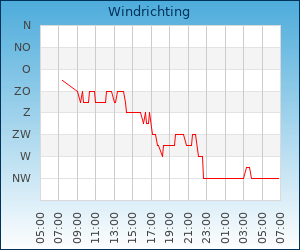 | Windsnelheid en -richting | 9.0 km/u uit NW |