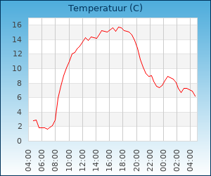 | Maximum temp. | 13.3 °C om 14:31 u |