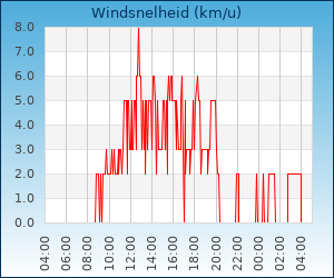 | Maximale windsnelheid | 8.0 km/u om 12:05 u |