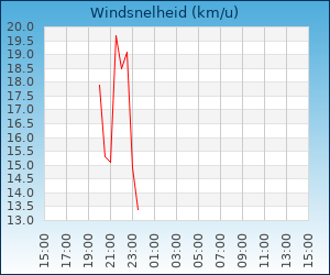| Windsnelheid en -richting | 13.4 km/u uit W |