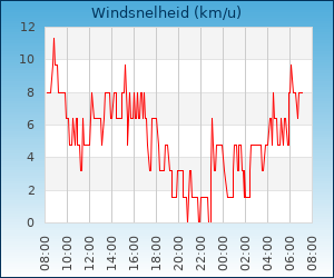 | Windsnelheid en -richting | 0.0 km/u uit W |