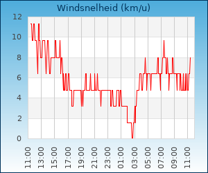 | Maximale windsnelheid | 22.5 km/u om 07:40 u |