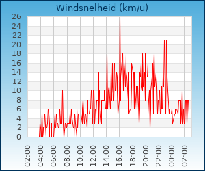 | Maximale windsnelheid | 16.0 km/u om 00:04 u |