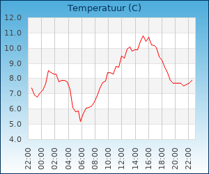 | Minimum temp. | 5.1 °C om 05:47 u |
