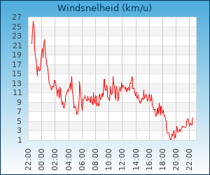 | Maximale windsnelheid | 49.7 km/u om 00:15 u |