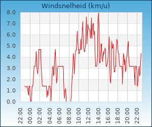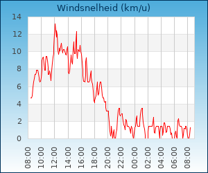 | Maximale windsnelheid | 43.6 km/u om 00:51 u |