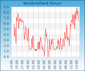 Maximale windsnelheid | 14.4 km/u om 10:23 u |