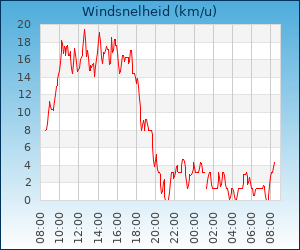 | Maximale windsnelheid | 9.7 km/u om 00:16 u |