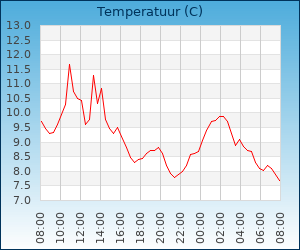 | Maximum temp. | 9.9 °C om 02:22 u |