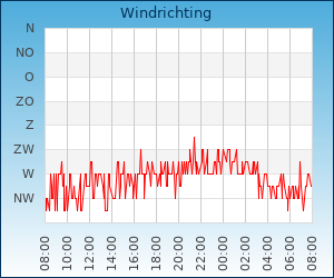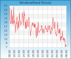 | Windsnelheid en -richting | 13.7 km/u uit NW |