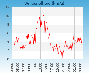 | Maximale windsnelheid | 11.9 km/u om 00:57 u |