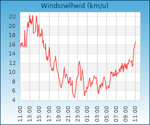 | Maximale windsnelheid | 30.6 km/u om 09:06 u |