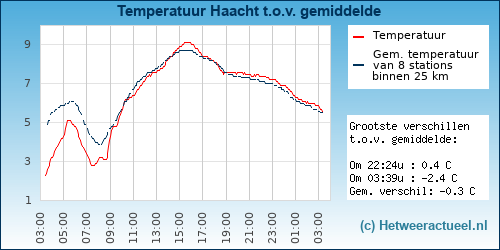 | Maximum temp. | 9.1 °C om 15:17 u |