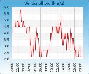 | Maximale windsnelheid | 12.1 km/u om 02:08 u |