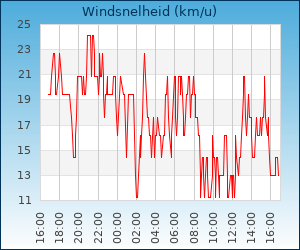 | Maximale windsnelheid | 30.6 km/u om 04:01 u |