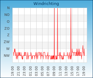 | Windsnelheid en -richting | 22.7 km/u uit NW |