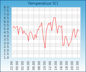 | Maximum temp. | 6.6 °C om 13:26 u |