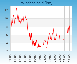 | Maximale windsnelheid | 14.5 km/u om 02:06 u |