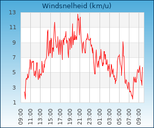 | Maximale windsnelheid | 18.5 km/u om 00:31 u |