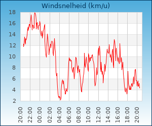 | Maximale windsnelheid | 16.9 km/u om 02:31 u |