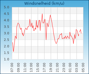 | Windsnelheid en -richting | 3.0 km/u uit O |