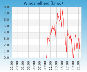 | Windsnelheid en -richting | 5.7 km/u uit WZW |