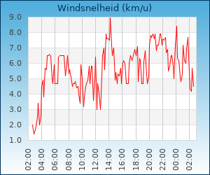 | Windsnelheid en -richting | 4.7 km/u uit ZO |