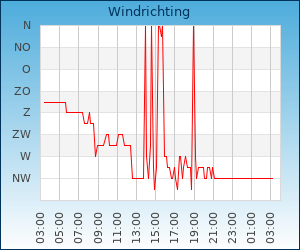 | Windsnelheid en -richting | 0.0 km/u uit WNW |