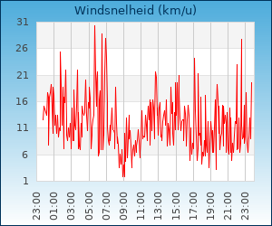 | Maximale windsnelheid | 30.3 km/u om 05:39 u |
